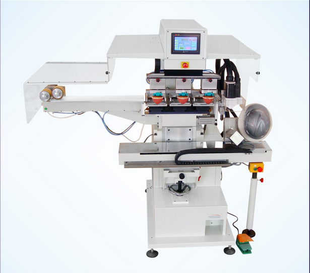 YC300P八色轉(zhuǎn)盤(pán)移印機(jī)是為大工件的套色印刷而精心設(shè)計(jì)的一種印刷機(jī)。是一種通用型印刷機(jī),能廣泛粗用于日常用品、玩具、電子、電器、塑料、皮革、金屬、玻璃、輕工業(yè)及食品包裝等各種行業(yè)中。