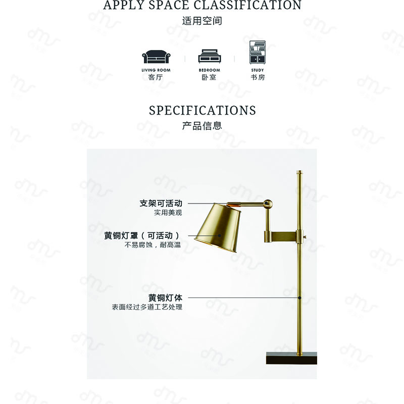 美式設(shè)計(jì)師現(xiàn)代簡(jiǎn)約創(chuàng)意客廳書房臥室床頭燈個(gè)性黃銅金屬書桌臺(tái)燈