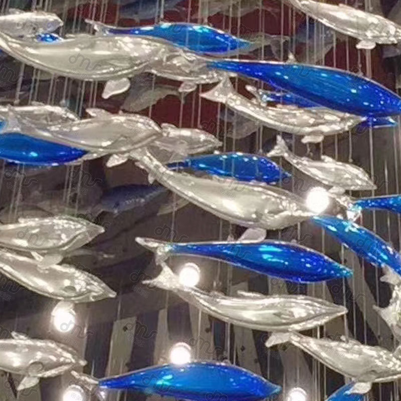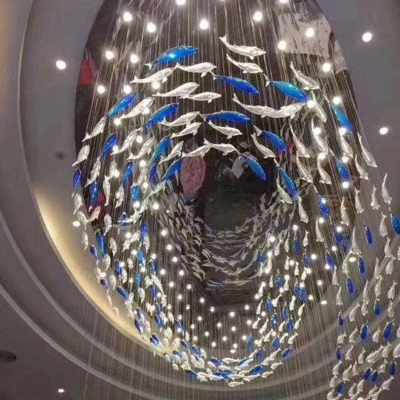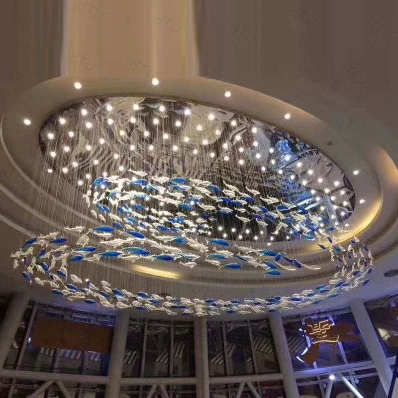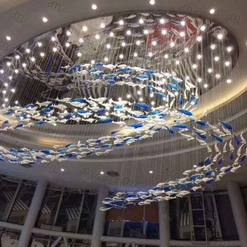 創意琉璃橢圓形小魚大型吸頂吊燈