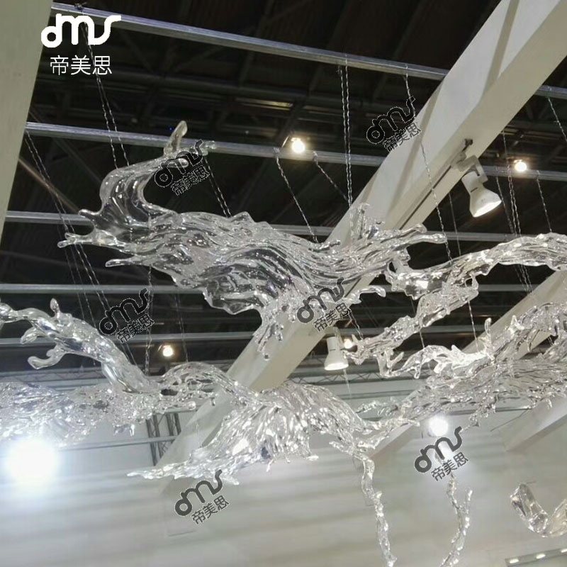 大型酒店會(huì)所空中藝術(shù)吊飾簡(jiǎn)約透明樹(shù)脂雕塑擺件