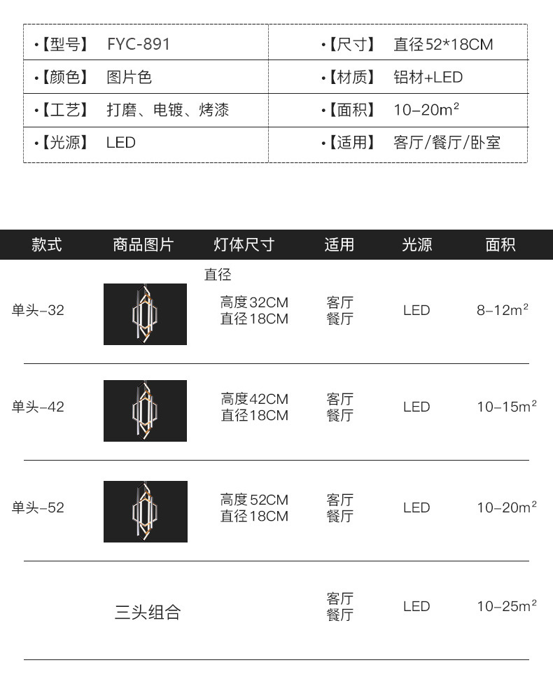 單頭吊燈W18*H32CM,W18*H42CM,W18*H52CM,三頭組合吊燈