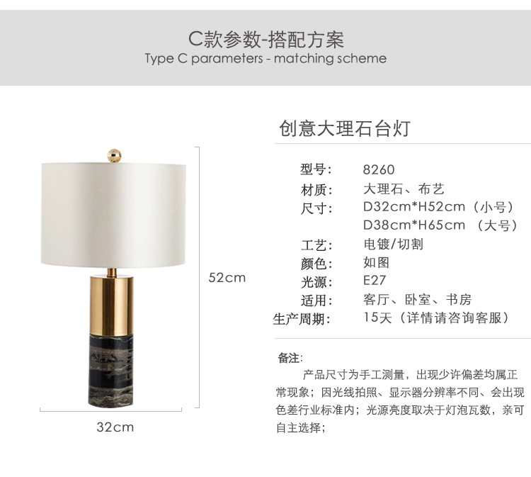 圓柱大理石臺燈