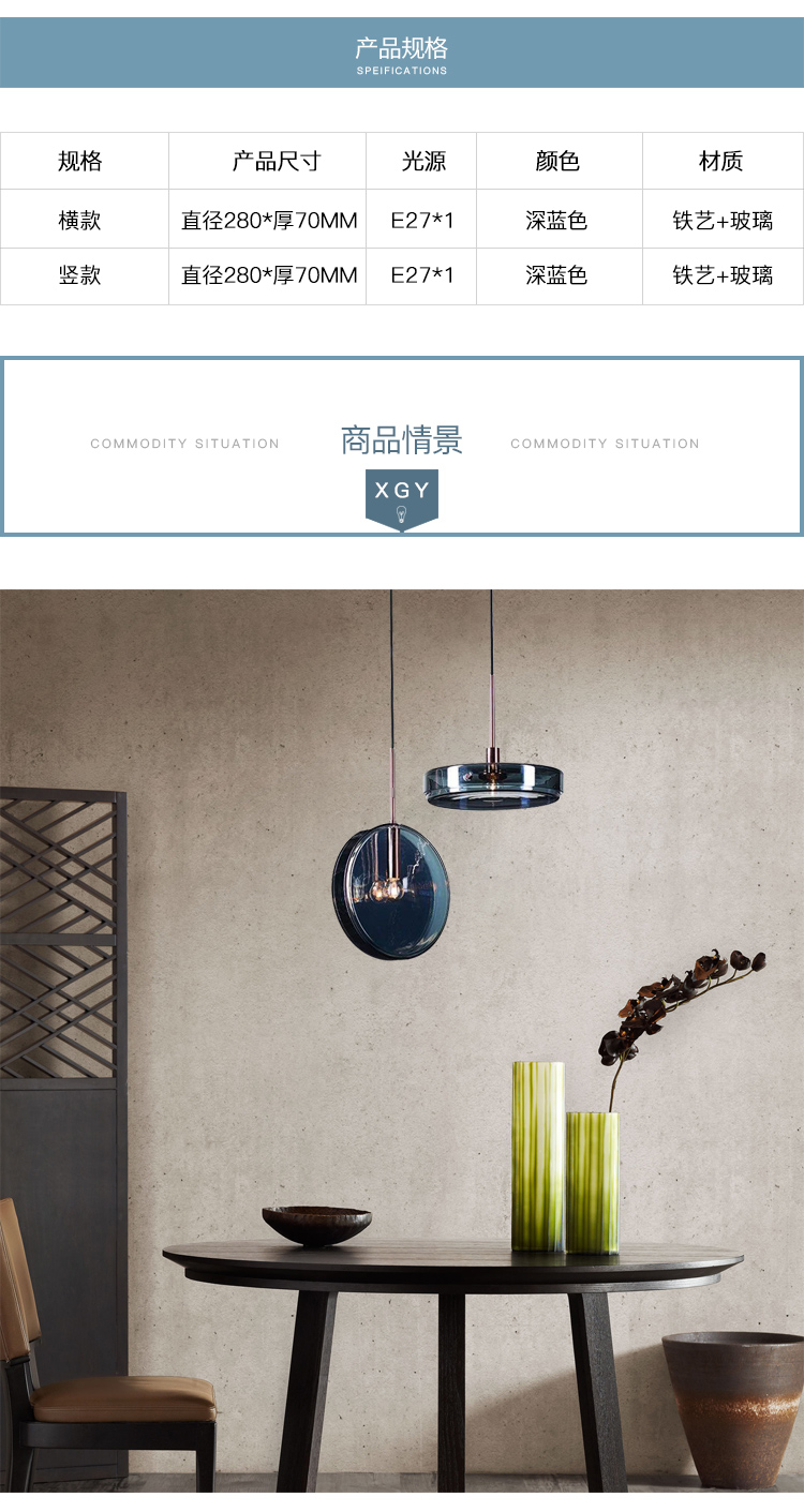 設計師創意藍色小吊燈